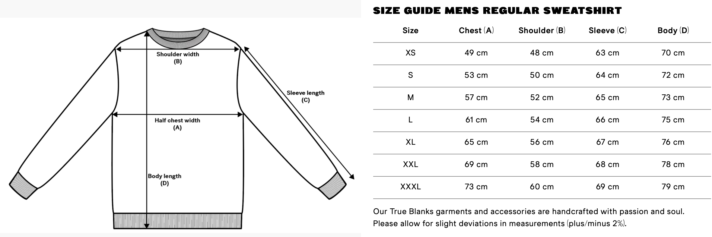 Tröjan är i herrmodell och därför stor i storleken, se måtten i bildspelet